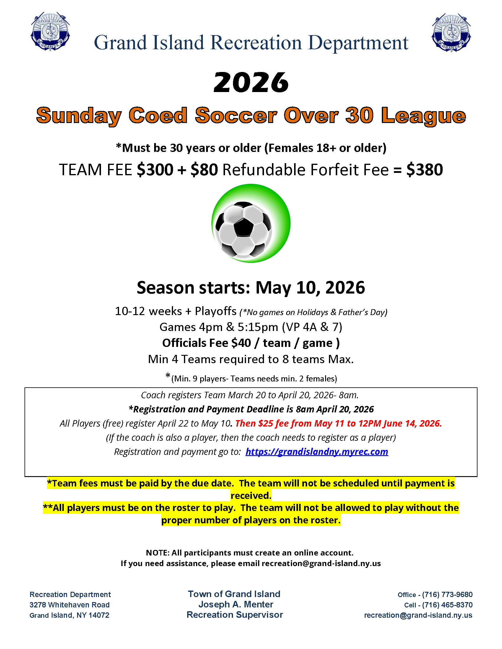 Registration and payment go to: https://grandislandny.myrec.com