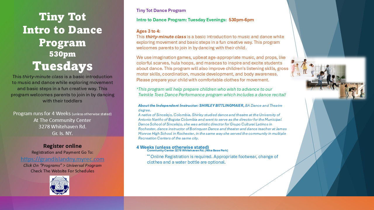 About the Independent Instructor: SHIRLEY BITTLINGMAIER, BA Dance and Theatre degree.